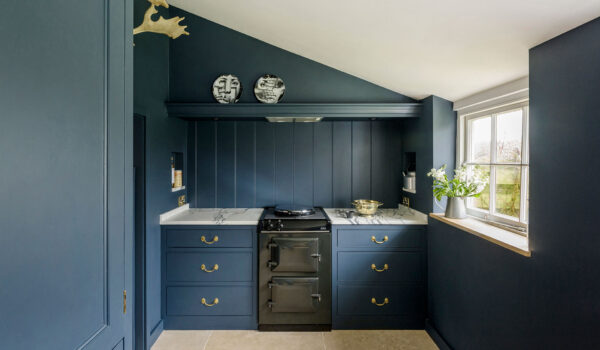 Cabinet frames were kept square for an elegant look, with frames extending to the floor for a humble appearance, with doors finished with our simple angled bead and a small cock bead for a small traditional detail being applied to the top and bottom edges of all drawers. As an Aga had been a mainstay growing up, an Aga 60 was the perfect choice, allowing space for practical drawers and counter tops either side. In order to keep the palette simple, indulgent wide planked bead and butt panelling completed the cooking area splash back.